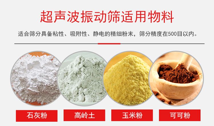 由于超聲波振動篩加裝了超聲波篩分系統(tǒng),適合篩分具備粘性、吸附性、靜電的精細(xì)粉末,篩分精度在500目以內(nèi),所以在篩分比較細(xì)的物料超聲波振動篩的還是站具很大得優(yōu)勢。
