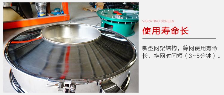 1、篩格增高式設(shè)計(jì),防止?jié){液飛濺,大觀察口,易于觀察篩面;