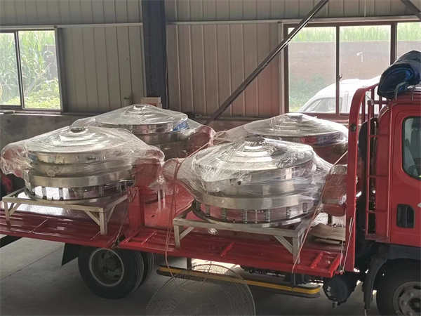 4臺1200不銹鋼直排篩發(fā)貨, 加裝超聲波系統(tǒng),篩分精度高,產(chǎn)量大, 能耗低,全封閉,無粉塵,特制電機(jī)。