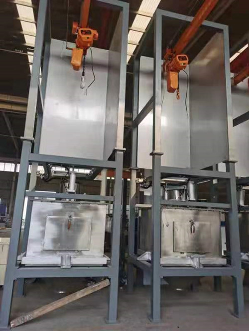 噸包投料站又稱噸袋拆包機(jī),是用來(lái)實(shí)現(xiàn)袋裝散裝物料的卸料功能,為半自動(dòng)操作。包裝袋由電動(dòng)葫蘆提升,包裝袋的袋繩掛在鋼性支架上,手動(dòng)操作控制葫蘆升降和行走,沿著行走導(dǎo)軌運(yùn)行到卸料區(qū)上方落下,將包裝袋放置在支架托盤上,使大袋處于卸料位置。然后手動(dòng)打開卸料閥操作門,人工將包裝袋的卸料口拉入到卸料閥的系口出,按下系帶按鈕,卸料閥束緊氣缸將袋口鎖緊,再手動(dòng)將大袋的卸料口從卸料位置拉下,罩在卸料口密封箱內(nèi)的出料管外側(cè),按下壓袋機(jī)構(gòu)氣動(dòng)控制開關(guān),使密封法蘭下降,并緊壓在出料管的管端,密封卸料通道,以防卸料過(guò)程中粉塵漏,接著,人工解袋,最后,關(guān)上操作門。手動(dòng)開啟與卸料口密封箱連接的通風(fēng)除塵管道上的閥門。至此,卸料準(zhǔn)備過(guò)程結(jié)束。