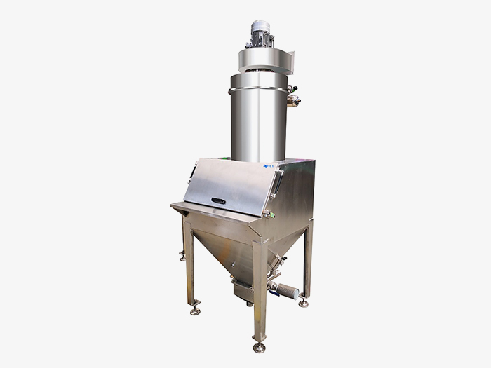當小袋物料需要解袋并倒入下一道工序時,只需人工直接拆包后投入到該系統(tǒng),投料時所產生的物料粉塵由集塵風機進行收集。
