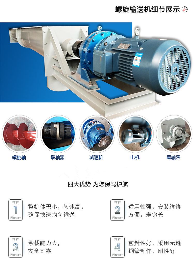 5) 螺旋輸送機(jī)應(yīng)用范圍很廣,適用于輸送粉狀物料。
