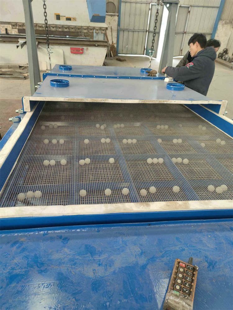 平面回轉(zhuǎn)篩在篩網(wǎng)下方格中的彈跳球通過直接裝機篩網(wǎng)來去除篩網(wǎng)上的顆粒,使篩網(wǎng)表面保持清潔,小球撞擊篩網(wǎng)產(chǎn)生的振動有助于物料的分離和粘在一起的顆粒分離。